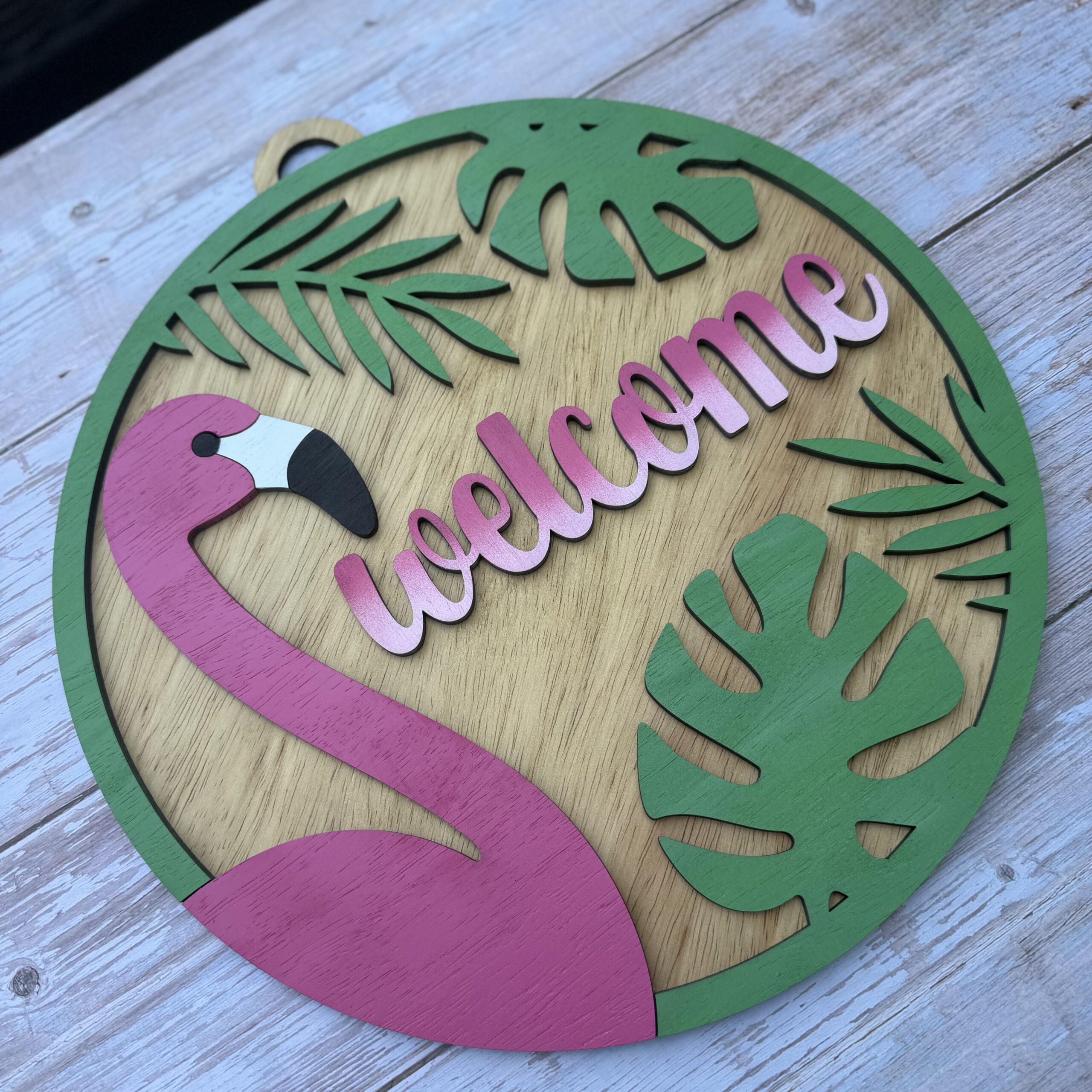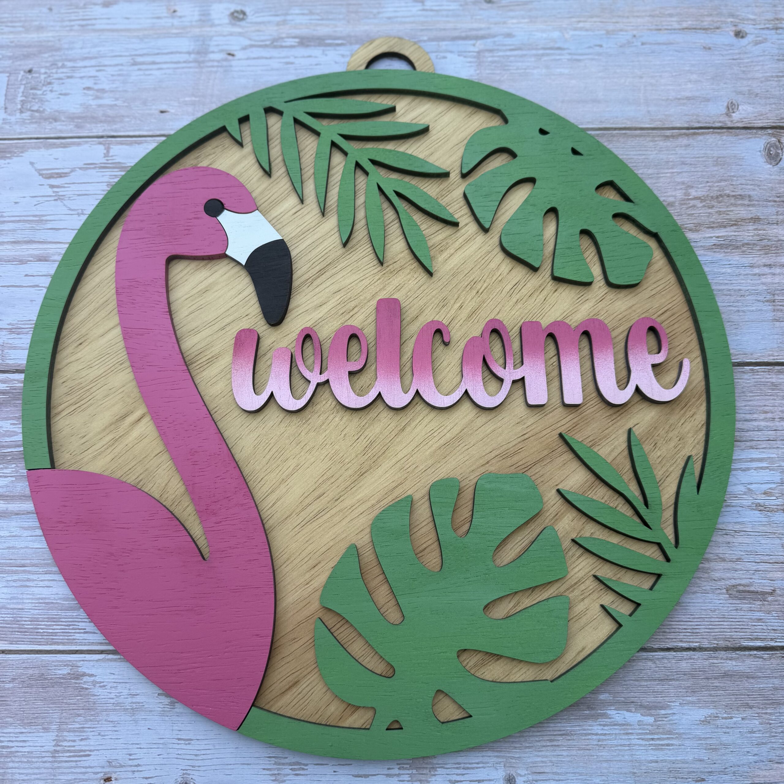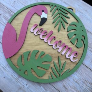 Flamingo Welcome Door Sign – Tropical Front Door Decor |