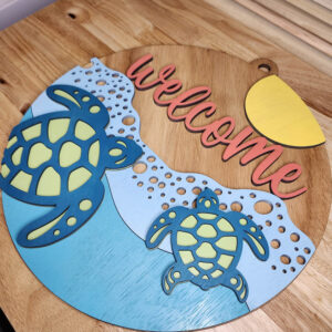 Bring some coastal calm to your entryway with our Handmade Wooden “Welcome” Turtle Door Hanger. Featuring a beautifully detailed 3D sea turtle design, this round wooden sign perfectly captures the serene spirit of the beach. It’s the ideal blend of coastal elegance and rustic charm, providing a much more unique look than a standard wreath